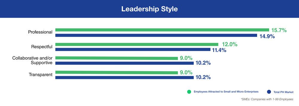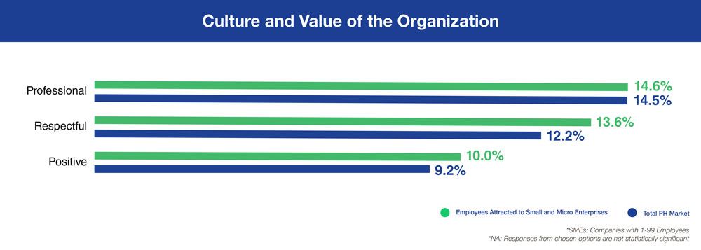 Strategy 4 Boost morale with a professional and respectful corporate culture and values Your organizations' culture is what will bind people together. It is the shared values and philosophies reflected in the collective action and behavior of every member of your team. Filipino talents prefer to work for companies which espouse a culture that is professional (14.6%), respectful (13.6%), and positive (10%).