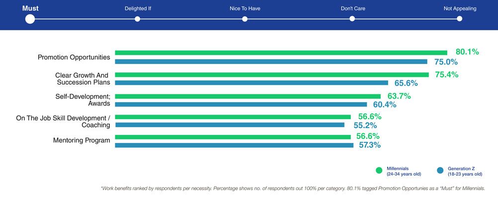 Though salary/compensation is their strongest driver, they have a need to devote quality time for their families and personal activities. Support this by giving overtime pay (84%), following non-working public/general holidays (78%), adhering to a five-day work week (69%), and offering the option to cash out unused annual leaves or take unpaid leaves (63%).