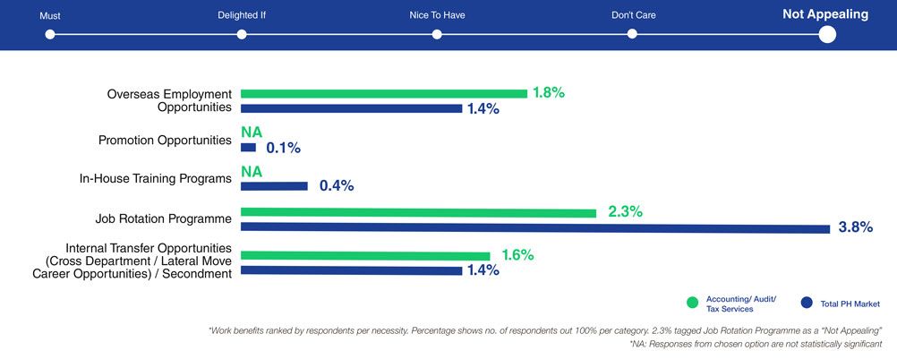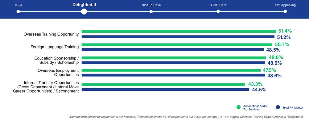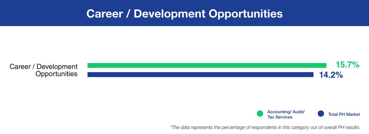 With the rising mental and technological demands from accountants, career/development opportunities are at the pinnacle of their priorities, outweighing the overall baseline expectation in the Philippines.