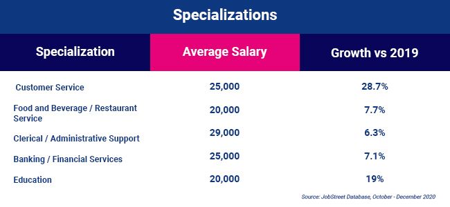 Based on our job report, we have divided the specializations accordingly based on candidates who are looking for work, the first being candidates who last updated their Jobstreet profile and jobseekers who are new to the working world.