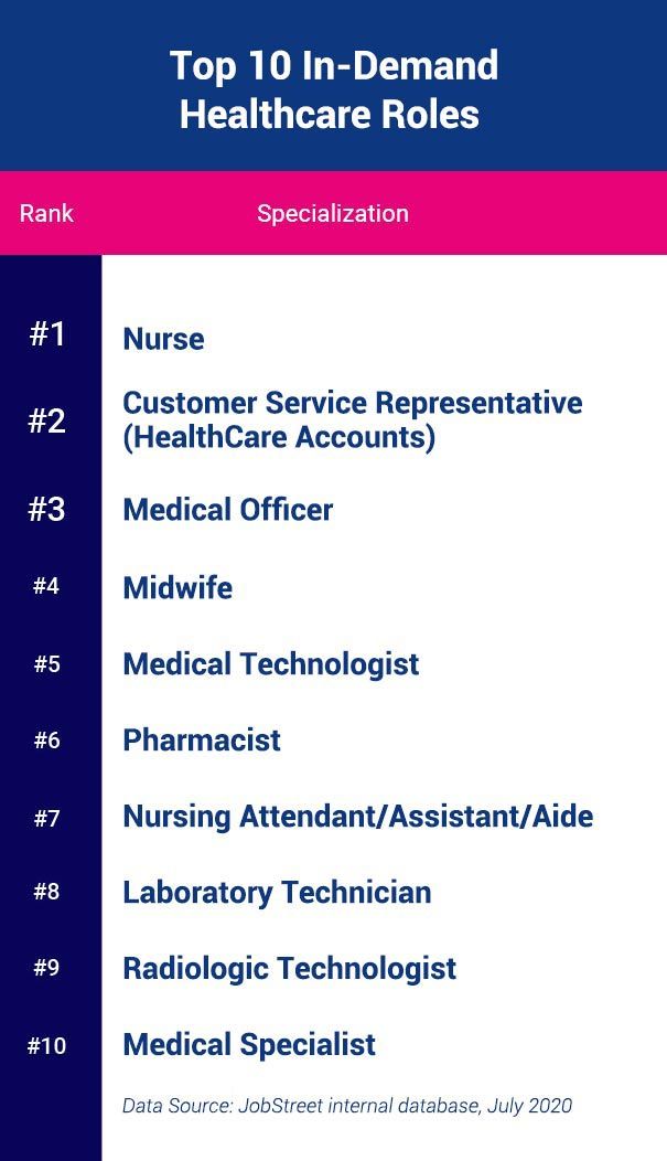 The data also shows the demand for remote consultations via healthcare accounts. More and more people are opting to stay at home and consult their symptoms without venturing out. These findings are also consistent with the rising trend of work from home jobs in the Philippines. Meanwhile, healthcare roles that are related to critical patient care, lab tests, and similar are also high in demand.