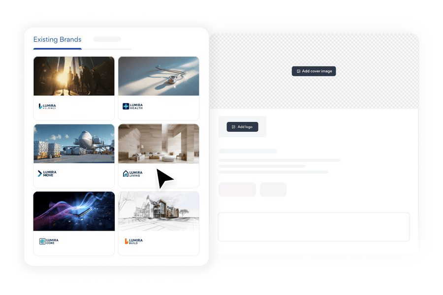 Keep multiple logos and cover images combinations for personalised brand creative assets.
